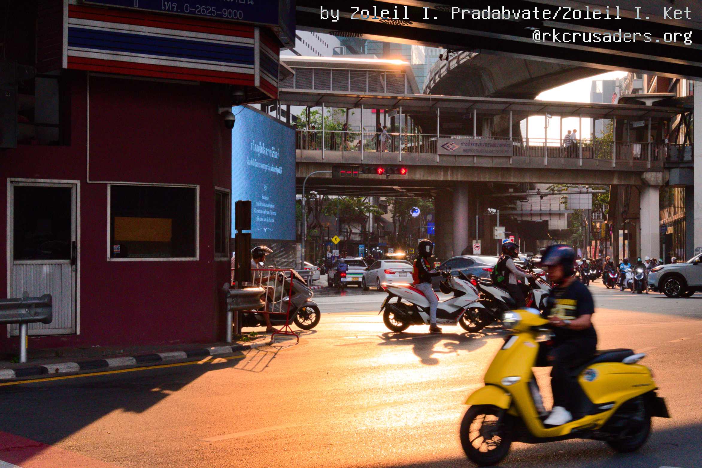 On the way I saw many lively things, people kissing, delivering things, the skytrain passing by, helicopters whizzing past,